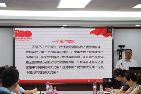 學習貫徹“七一”重要講話精神是當前和今后一個時期的一項重大政治任務,7月7日,公司黨委書記、執(zhí)行董事、總經理鮮亞為中層以上干部講授題為《再學習再領悟習近平總書記在慶祝中國共產黨成立100周年大會上的重要講話精神》的黨課,帶領大家一起回顧了總書記講話中“一個莊嚴宣告”、“一個偉大夢想”、“四個偉大成就”、“一個偉大精神”、“九個必須”、“一個殷切期望”、“一個號召”等核心內容,并分享了自己學習的心得體會。他談到,中國共產黨新的一百年征程已開啟,以史為鑒,開創(chuàng)未來,為實現(xiàn)第二個百年目標--全面建成社會主義現(xiàn)代化強國而催人奮進,我們處于這個奮進時代,只有不負韶華,奮勇向前。7月以來,黨委副書記、常務副總經理徐志謙在綜合四黨支部,黨委副書記、紀委書記、工會主席鄧明明在黨群系統(tǒng),黨委委員、副總經理何軍為黨外人士,副總經理齊云、公司監(jiān)事、代理銷售事業(yè)部總經理楊林波在銷售系統(tǒng),各黨支部書記在所在黨支部,分別就學習貫徹習近平總書記“七一”重要講話精神進行了宣講,確保將總書記重要講話精神傳達到各個基層組織和一線。