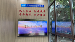 如今銷售大樓舊貌換新顏,大樓外“西南藥業(yè)銷售公司”的文化石熠熠生輝,陳舊的外墻穿上了紅、黃、灰相間的新衣。樓頂換成了壓型瓦,保溫效果好,隔熱效果強,噪音也降低了;順著大理石臺階拾級而上,鮮花、綠植簇擁兩旁,電動玻璃門自動開啟,多媒體播放著西南藥業(yè)宣傳片,一幅幅生動的畫面吸引著訪客駐足觀看;多媒體上方,書寫著西南藥業(yè)行動要點:規(guī)范高效、智造提質(zhì)、老藥新做、創(chuàng)新增效。