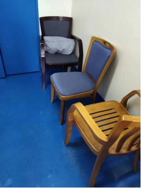 粉針劑車間、小容量注射車間、大容量注射劑車間及動力車間共11位同志被封控在廠里,晚上睡覺只能將就拼湊起幾把椅子。一時間,解決吃住問題,成了頭等大事。