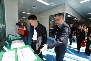 賴(lài)明才一行首先參觀了公司粉針劑車(chē)間,在車(chē)間門(mén)口展板前,鮮亞向賴(lài)明才一行介紹了公司概況、發(fā)展歷程、戰(zhàn)略愿景并對(duì)公司抗疫藥品保供情況作簡(jiǎn)要匯報(bào)。賴(lài)明才十分關(guān)心復(fù)方對(duì)乙酰氨基酚片(Ⅱ)(商品名:散列通)、布洛芬緩釋片(商品名:芬尼康)等抗疫藥品的生產(chǎn)情況,高度贊揚(yáng)了公司在抗疫保供期間的突出貢獻(xiàn)。
