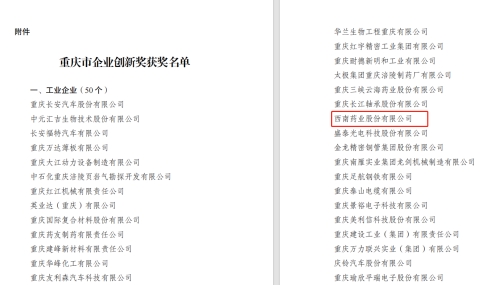 為深入貫徹習近平新時代中國特色社會主義思想,全面貫徹黨的二十大精神,進一步牢固樹立創(chuàng)新發(fā)展理念,更好引領推動全市經(jīng)濟社會高質(zhì)量發(fā)展,9月7日,重慶市人民政府對重慶優(yōu)秀企業(yè)予以表彰,授予西南藥業(yè)等企業(yè)“重慶市企業(yè)創(chuàng)新獎”。