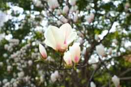 玉蘭擎著粉瓷般的花盞,優(yōu)雅如仙子,散發(fā)清新脫俗的氣質(zhì)。
