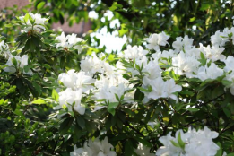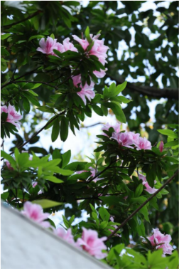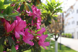 各色杜鵑競相盛開,絳紅似火焰從地面竄上枝頭,桃粉若云霞漫過綠化帶,純白則像灑落的月光凝在翠葉之間。
