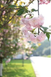 粉櫻層層疊疊,如夢似幻,微風(fēng)拂過,一樹樹粉色櫻花雨,贈(zèng)你浪漫滿懷。