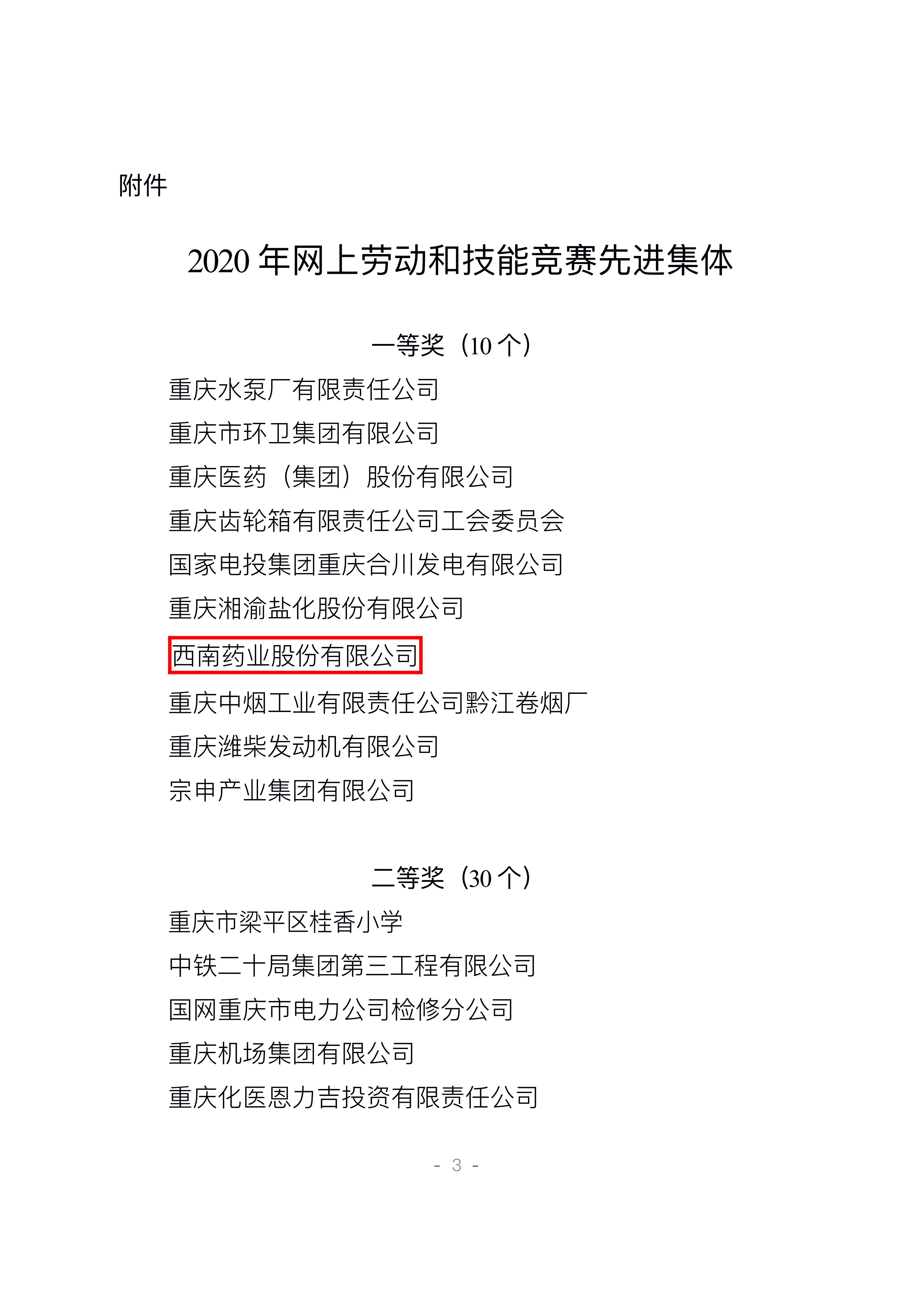 喜 報(bào)!西南藥業(yè)榮獲重慶市網(wǎng)上勞動(dòng)和技能競(jìng)賽先進(jìn)集體一等獎(jiǎng)